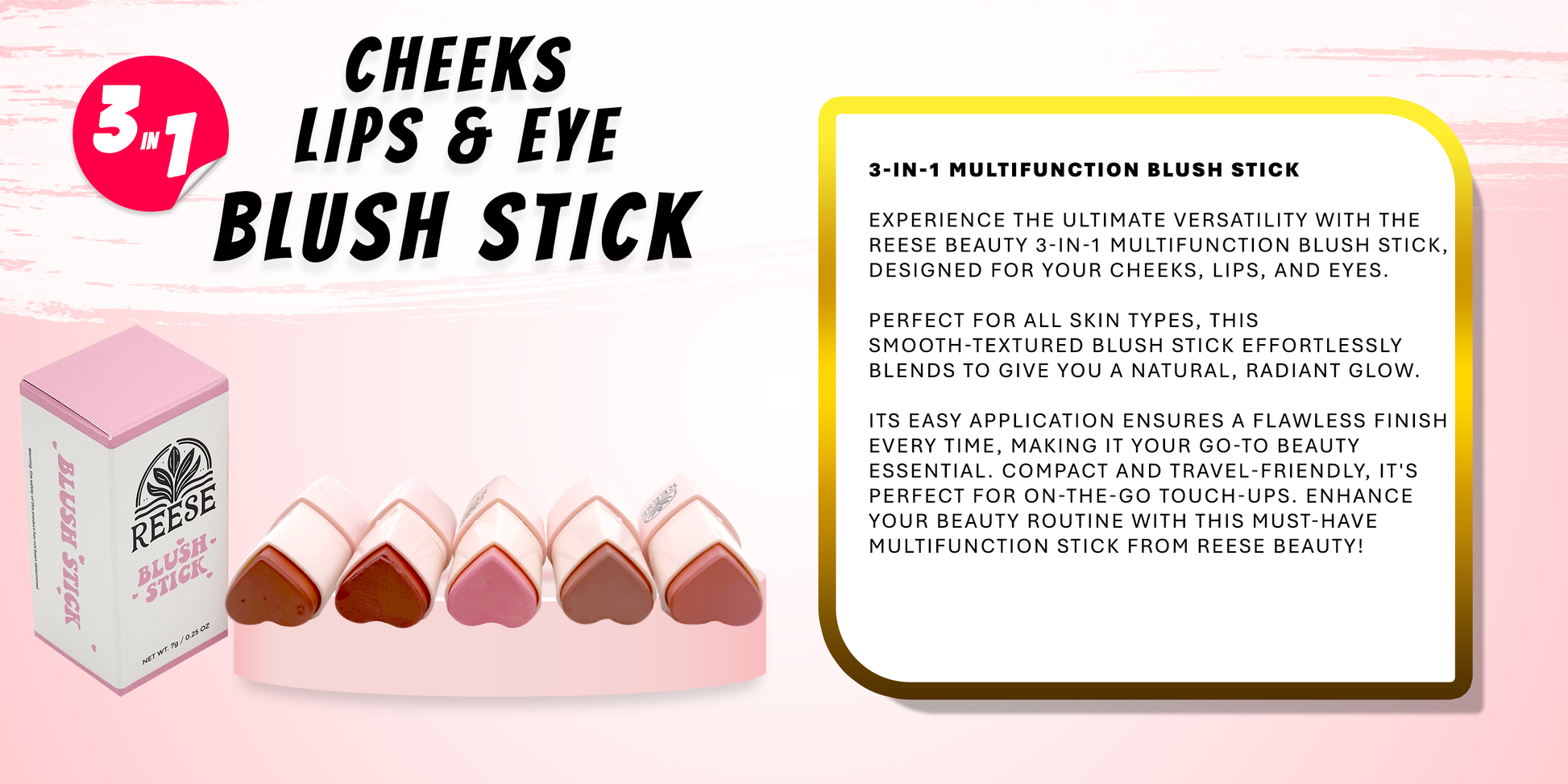 The Reese Beauty 3-in-1 Blush Stick is your all-in-one glow-up essential. Use it on cheeks, lips, and eyes for a soft, radiant flush that blends like a dream. With its creamy texture and mess-free stick design, touch-ups are easy — anytime, anywhere.