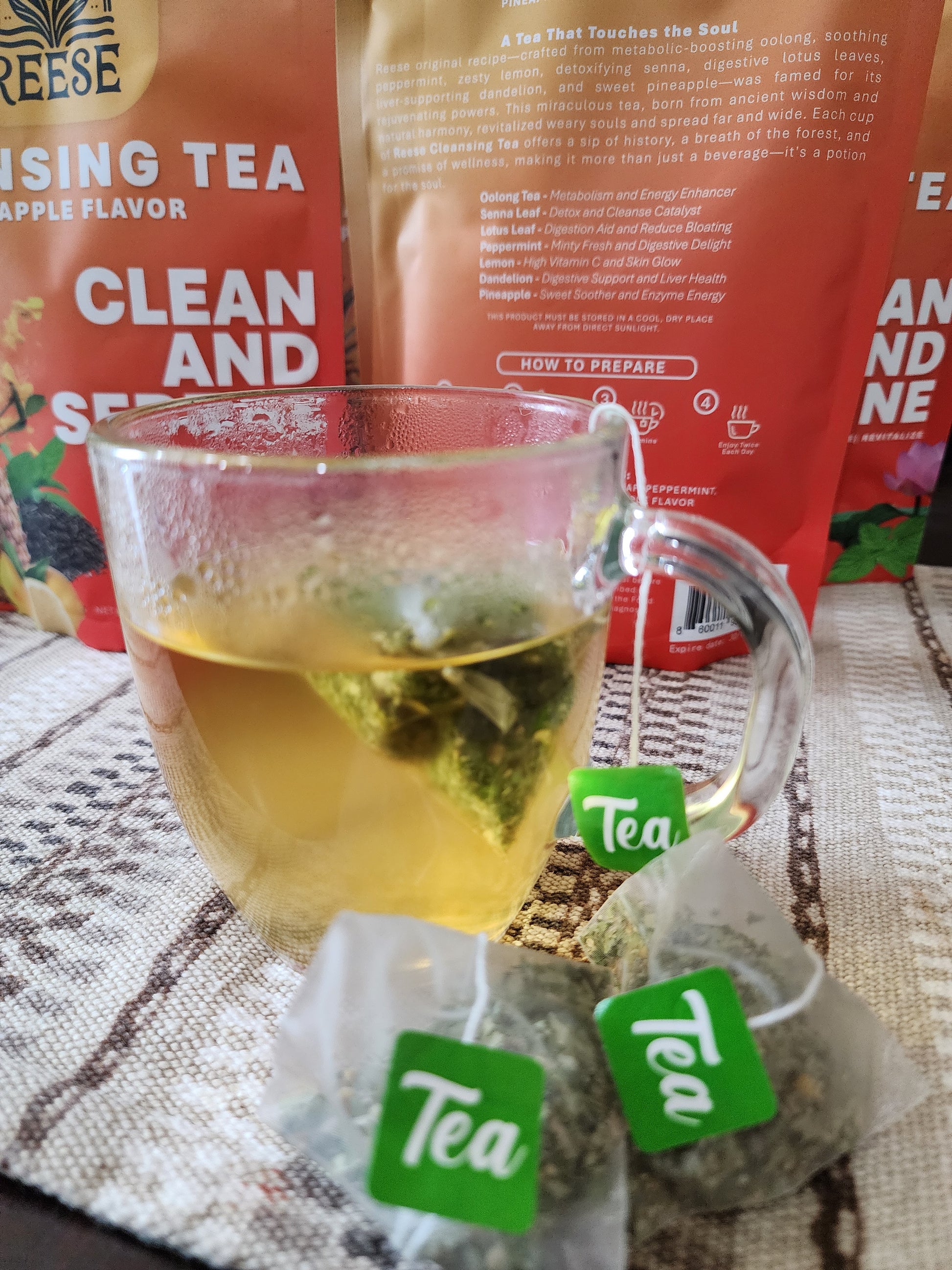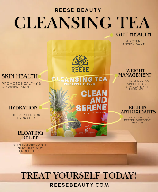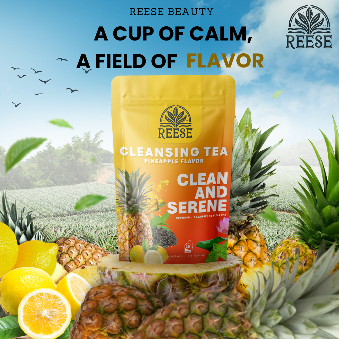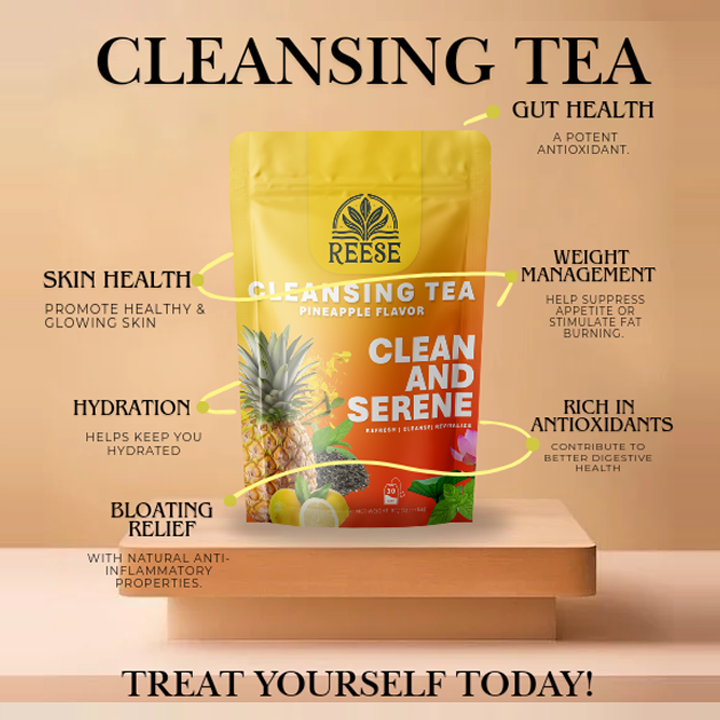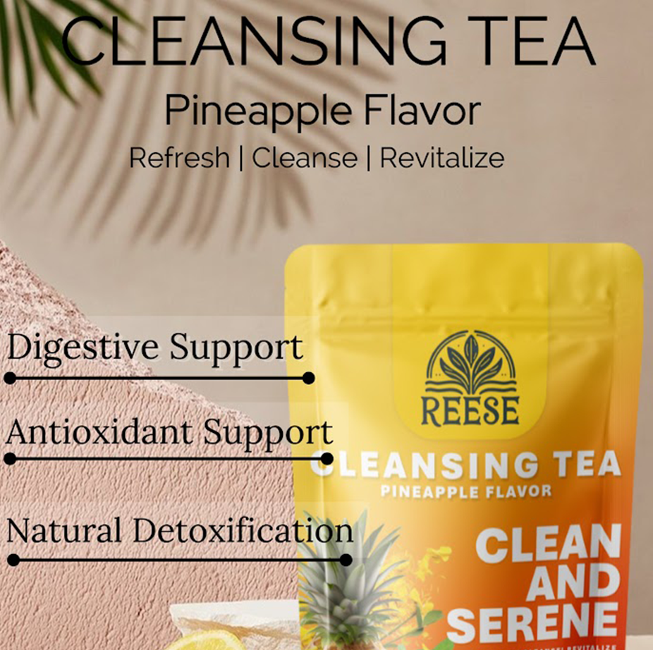 Reese Cleansing Tea blends ancient herbal wisdom with feel-good flavor for a refreshing ritual your body will thank you for. Each cup combines metabolism-boosting oolong, digestive lotus leaf, detoxifying senna, and soothing peppermint — all harmonized with zesty lemon, sweet pineapple, and liver-supporting dandelion.