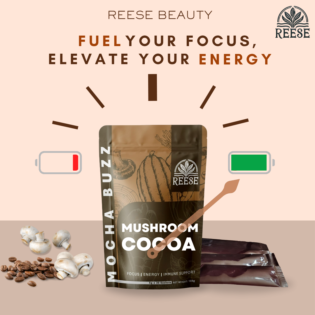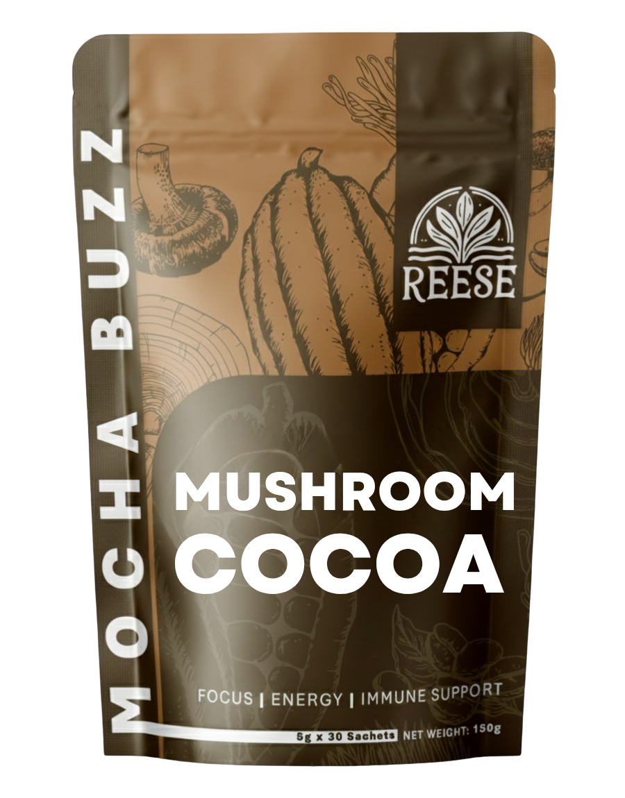 Experience the best of nature and tradition with Reese Mushroom + Cocoa Coffee. We blend premium rich cocoa, and powerful functional mushrooms — including reishi, lion’s mane, cordyceps, shiitake, and turkey tail — to create a smooth, earthy brew that supports focus, immunity, energy, and calm.